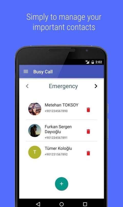 Занято вызов является приложением для управления звонками бесплатно чрезвычайную ситуацию, которая основана на смс. Можно определить и назначить смс ваши срочные контакты в ней легко. Когда один из определенного контакта посылает вам важную SMS, мобильный переключается в аварийный режим даже приглушен. Назначают тон для каждого кода смс и определить собственное сообщение быстрого реагирования в чрезвычайных ситуациях.