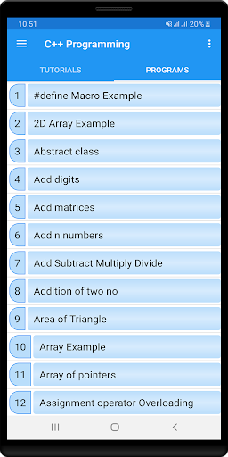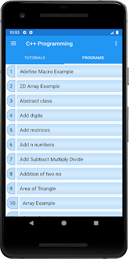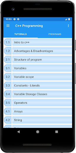 Это приложение для программирования C позволяет вам проводить учебные пособия по программированию C в вашем телефоне Android.Он содержит около 143 программ.