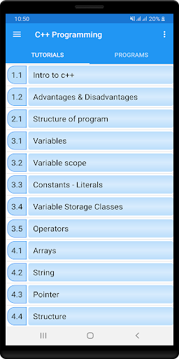 имел ли у вас какой -либо предыдущий опыт программирования или нет, это приложение поможет вам узнать все, что вам нужно знать, чтобы начать создавать и составлять свои собственные программы.Это приложение покажет вам, насколько легко стать программистом.функции, классы и объекты, наследование и amp;Полиморфизм, шаблоны, файлы и исключения.