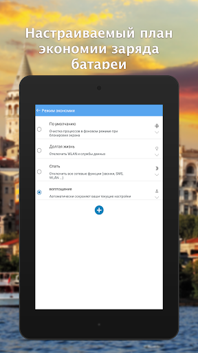 Автоматически анализирует все приложения, работающие на вашем устройстве, и обнаруживает энергопотребляющие приложения. Оптимизирует обнаруженные приложения и информирует вас об оставшемся сроке службы аккумулятора.
