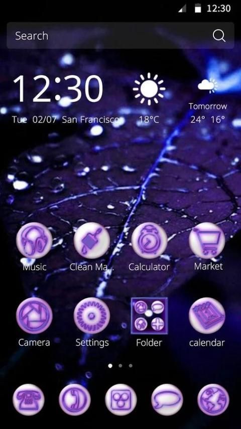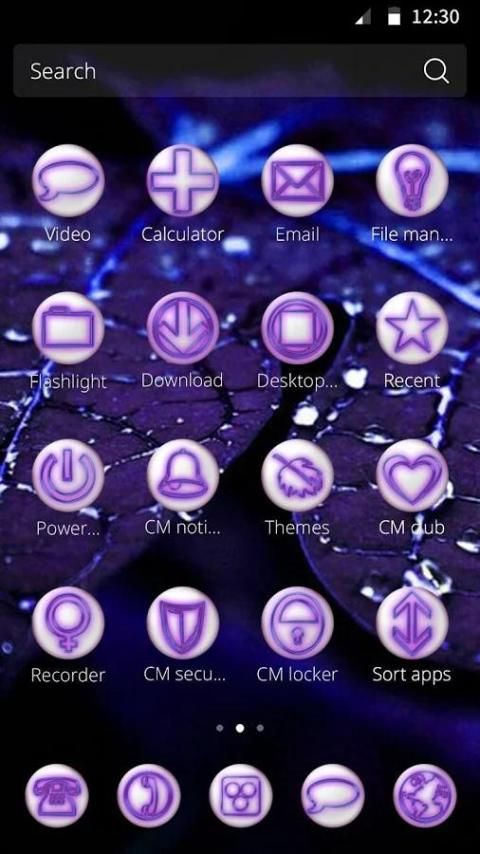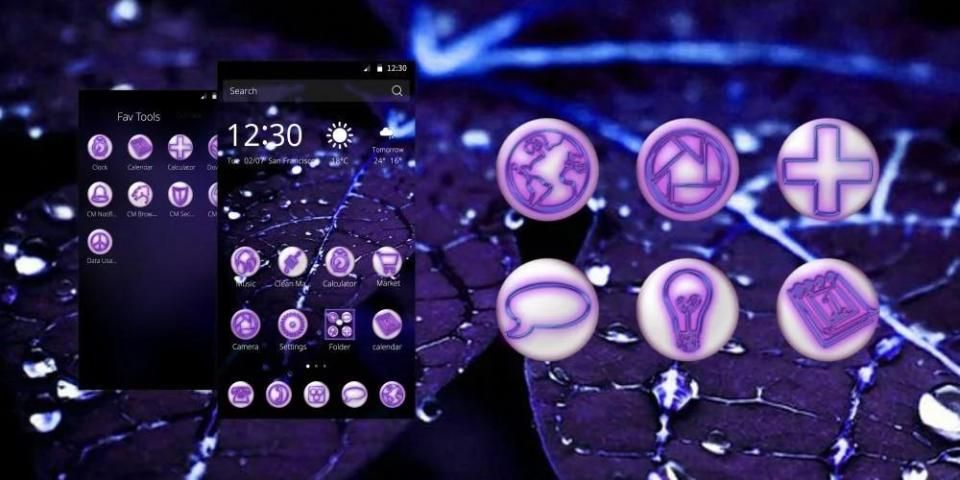 CM Launcher Фиолетовый листьев Сюжет свободная тема специально разработан для пользователей CM пусковой установки, в том числе десятки унифицированных значков и художественных обоев, которые могут персонализировать ваше устройство легко.