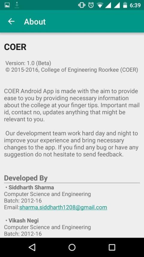 Это приложение предоставляет вам всю необходимую и важную информацию о том, что человек должен знать о колледже. Приложение также поддерживает своих пользователей в курсе всех новых вещей происходит в колледже инженерных Roorkee. Поскольку посещаемость играет жизненно важную роль в жизни инженерного студента, чтобы пользователи могли проверить их посещаемость практически в любое время. И одна из особенностей этого приложения является то, что она дает уведомление каждый раз, когда новый результат объявляется, а также позволяет студентам проверить результат в самом приложении.