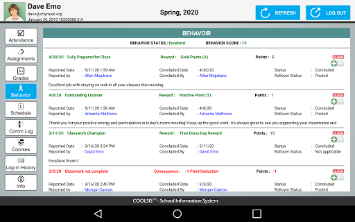 With COOLSIS Family Access, parents and students receive real-time access to necessary and useful information such as Attendance, Assignments, Grades, Behavior, Schedule, Courses, Communication Log, Log-in History and more to stay up-to-date with the school.