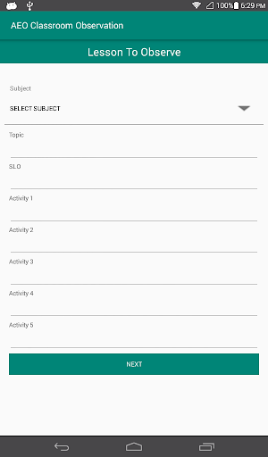 COT Classroom Observation is a tablet based monitoring form developed by PITB. This is used by Officials to evaluate teachers based on different performance indicators.