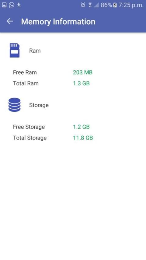- Оперативная память: Общая память и доступной оперативной памяти, информация Хранение вашего смартфона.