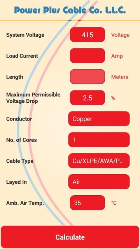 Размер кабеля калькулятор, разработанный Power Plus Cable Co. LLC, Фуджейра, ОАЭ, обеспечивает быстрый и легкий способ выбора подходящих размеров кабелей, необходимых для электрических цепей. Подходит для электрических, инженеры, консультанты, электрики кабельных монтажников и дизайнеров. Размер кабеля калькулятор также дает падение напряжения в цепи. Важным инструментом для всех инженеров-электриков, работающих в МООС промышленности.