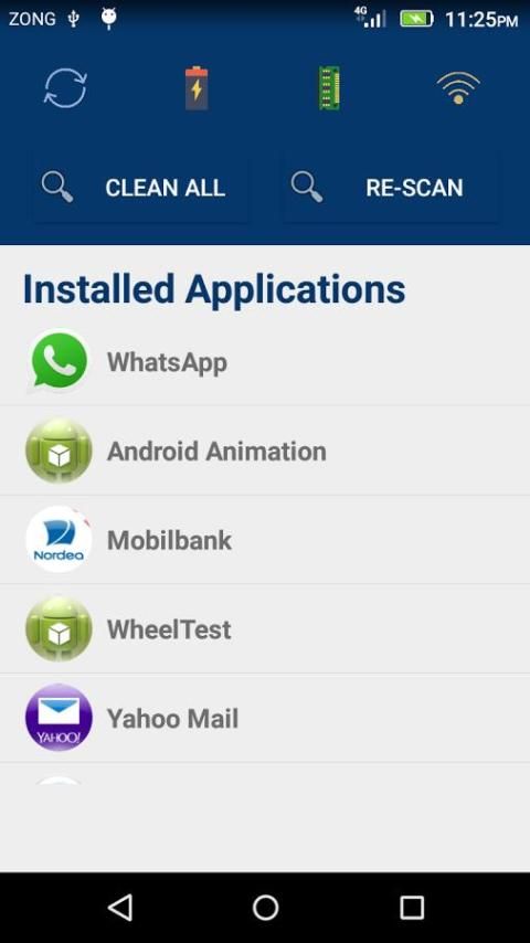 Все, что вам нужно сделать, это просто нажать на чистой все или повторно сканировать все кнопки, и это будет ясно и повысить вы мобильны и вы чувствуете, что вы просто начинает использовать устройство в первый раз. Кроме этого, он сообщим вам знать о ваших конфигураций батареи, состояние памяти, скорость WIFI, мобильный различных функций, а также сколько приложений, установленных на вашем мобильном и каковы их характеристики, если нажать на них.