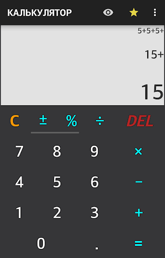• Другие операторы: %, ±, x², √ и многое другое, которые будут добавлены в следующих версиях. Чтобы получить доступ к ним все, просто прокрутить справа налево или наоборот на эти кнопки. Или просто подержать% и перетащить влево.