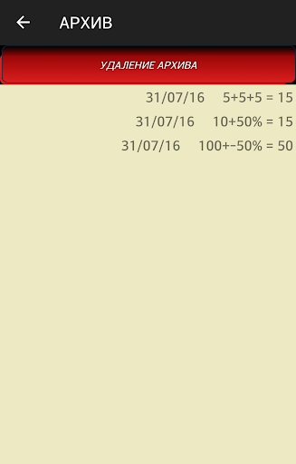 • История: Вы можете просмотреть в любой момент ваши предыдущие расчетные выражения и их дату.