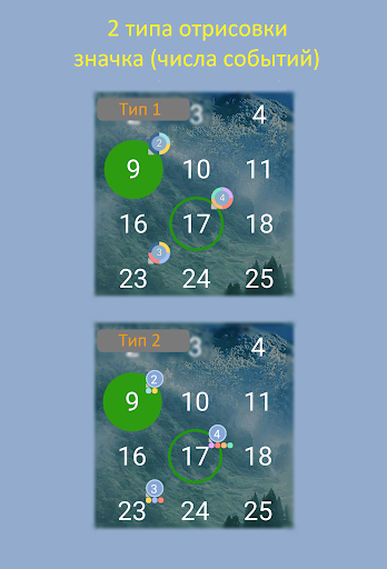 2. Просмотр числа событий в виде хинта(значка) к номеру дня в месяце.