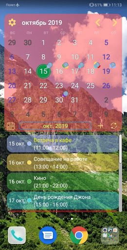 Виджет календаря с событиями.