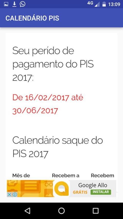 PIS 2017 календарь является средством общения, в котором он проинформировал бенефициаров дата выплаты в вашу пользу. Платежи PIS организованы в соответствии с конечным числом NIS, также известный как номер социальной надписи. Это было сделано для того, чтобы банки не tumultuassem с числом получателей, пытающихся получить свои деньги в течение одного дня.