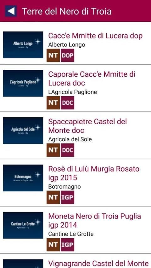 Приложение, чтобы сохранить даже после того, как событие в качестве полезного напоминания лучших вин Апулии.