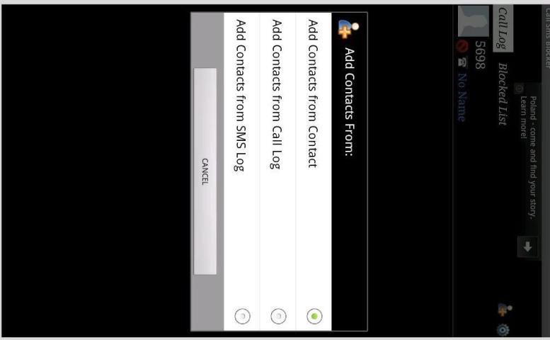 * Добавить контакты список заблокированных, чтобы начать их блокирования