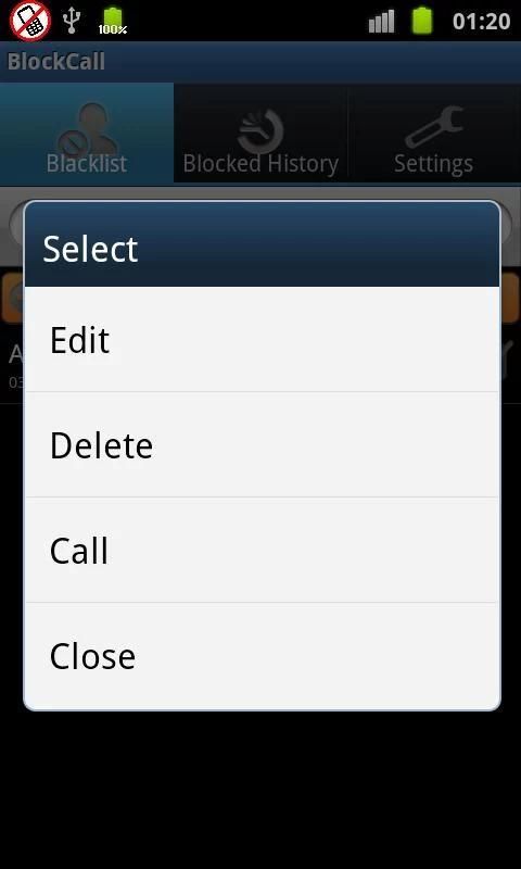 - Отображение списка блокировка вызовов,