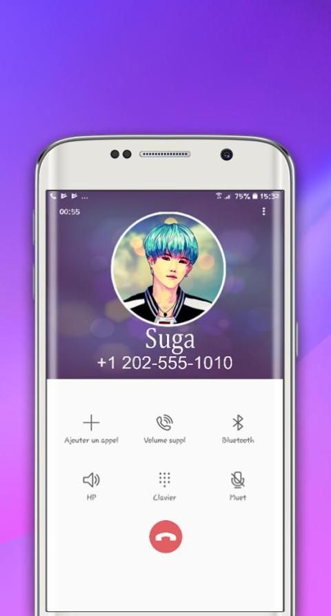 Вы можете также выбрать время для звонка Suga Ложного вызова и установить некоторые обои вентилятор приложение для звонков уникального экрана блокировки времени.