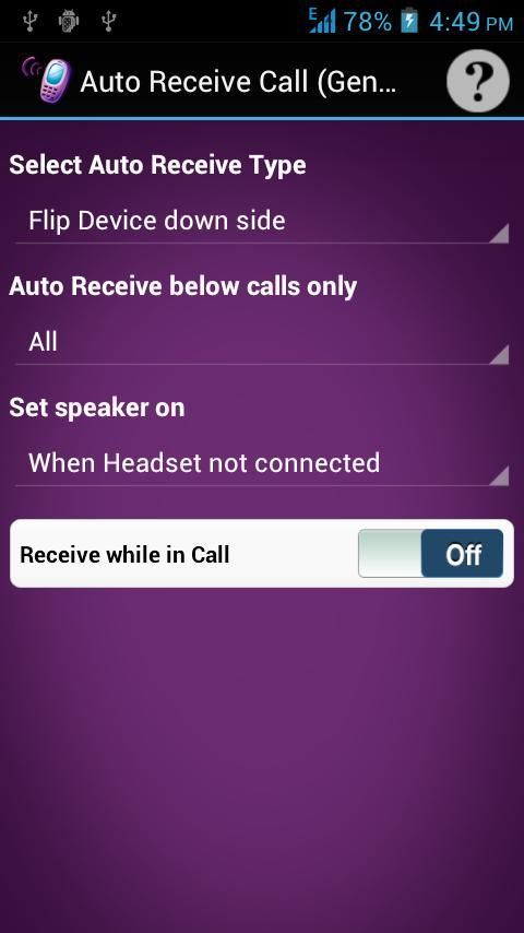 • Вы можете автоматически получать вызов встряхиванием устройства, Подавать устройство Вниз сторона, говоря Да (Распознавание голоса) и Авто Получайте спустя несколько секунд