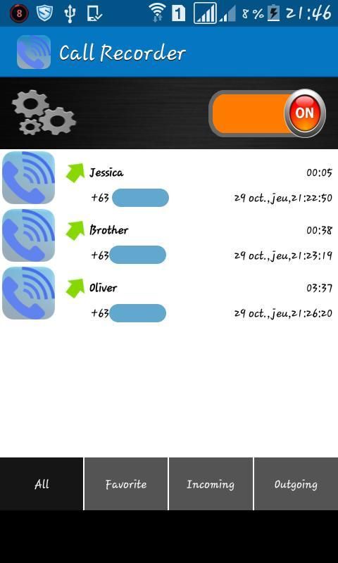 Descrption : Call Recorder gives you the easiest way to record all your phone conversations and manage them.