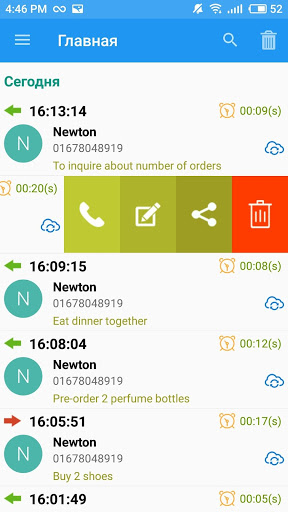 - Встряхнуть для записи вызова
