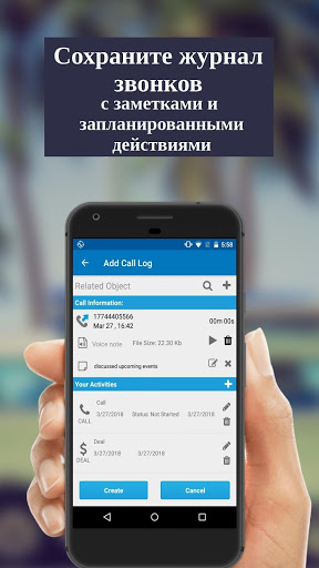 - Приложение предоставляет вам возможность создать запланированные действия в вашей CRM и установить напоминания о них;