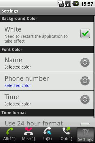 It can be classified display call log, including All, Missed, Incoming, Outgoing.Its clear features include delete all, delete a call log, delete all the call logs of a number.v2.0.0:Its features include Call, Send text message, Edit number before call, Telephone dial.Recent changes:can change background color nowcontent rating: Everyone
