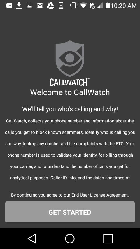 When you download CallWatch, we collect your phone number and information about the calls you get to allow you to use all the features of this app which include the ability to block known scammers for free, customize the level of protection and blocking features in the app, provide information about who is calling and why, and file a complaint from the app against offending callers, including abusive telemarketers and unlawful debt collectors directly with the FTC.