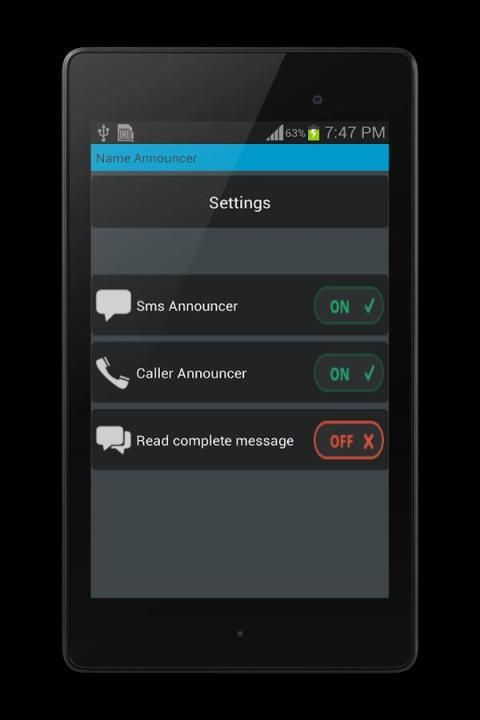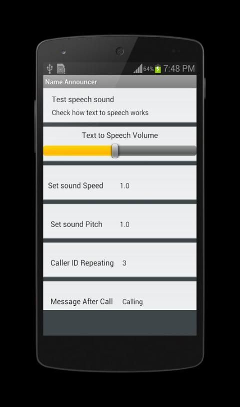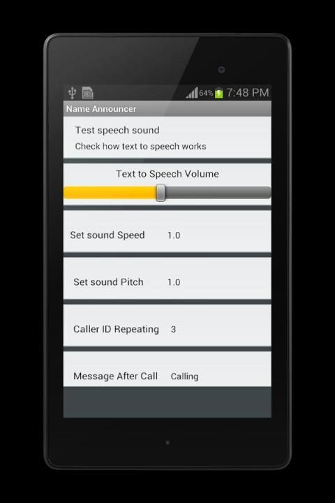 Имя вызывающего диктора выступает о входящих имя вызывающего абонента, и Имя отправителя так что вы можете определить, кто звонит, не глядя в телефон. Он даже может читать содержимое SMS для вас. И лучшее, что есть, это совершенно бесплатно. Имя абонента Диктор использует встроенный в Android текста в речь двигатель голос вызывающего абонента или SMS Sender ID. Эта программа не будет работать, если ваш телефон не имеет текста в речь данные, установленные в телефоне. Вы можете скачать с Google Play / магазин приложений, и он будет установить текст в речь все данные в вашем телефоне, если ваш телефон не иметь его предварительно установлена.
