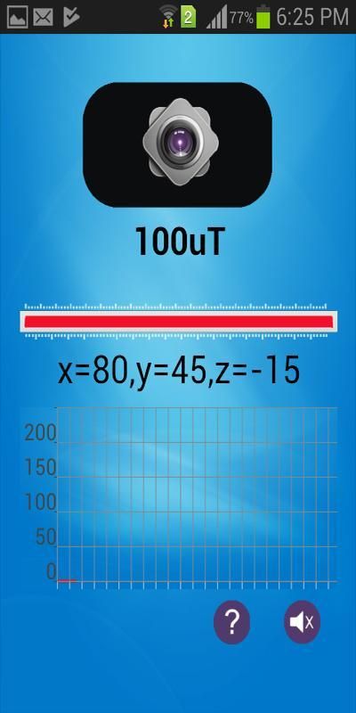 Скрытое приложение Детектор Камера проста в использовании, просто откройте его и переместить его вокруг подозреваемых объектов. Если подняться значение магнитного поля Тогда Существует скрытая камера или микрофон в этой области. Точность приложения полностью зависит от магнитного датчика в устройстве и зависит от электрического оборудования, таких как телевизоры, компьютеры ... из-за электромагнитные волны.