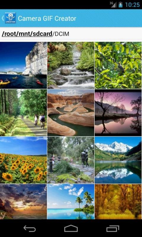 Нажмите на значок камеры и сделать фотографии, которые вы хотите. Если ваше приложение камеры имеет возможность серийной съемки пожалуйста, попробуйте его. Как только вы закончите, нажмите кнопку назад и Gif будет создана за считанные секунды. В галерее ниже отображает файлы GIF. Удерживая изображение, чтобы посмотреть его.