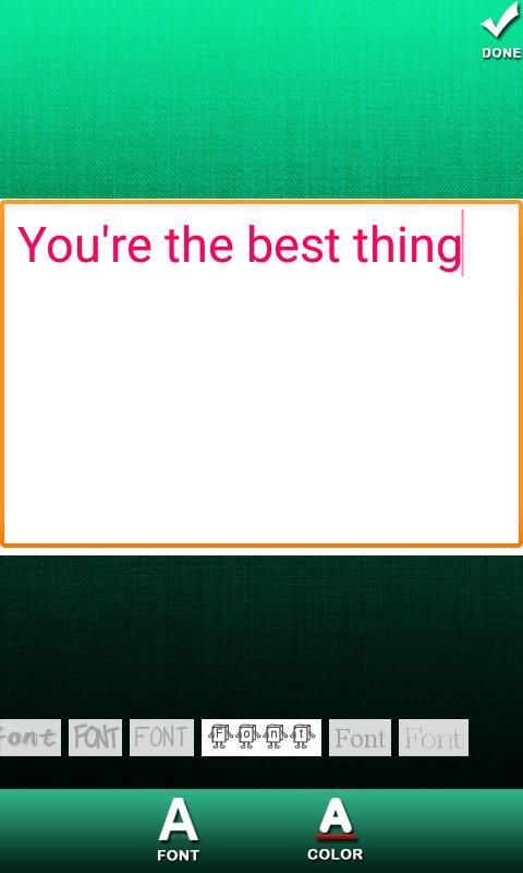Получить этот удивительный редактор текст фото и превратить ваши фотографии в прекрасные воспоминания, добавив их любовные цитаты и сообщения и создавать свои собственные фото водяной знак! Добавить текст к изображениям, времени и даты штампов, ваших любимых текстов песен, милые стикеры, и ваши красивые любовные воспоминания будут иметь магические эффекты фото!