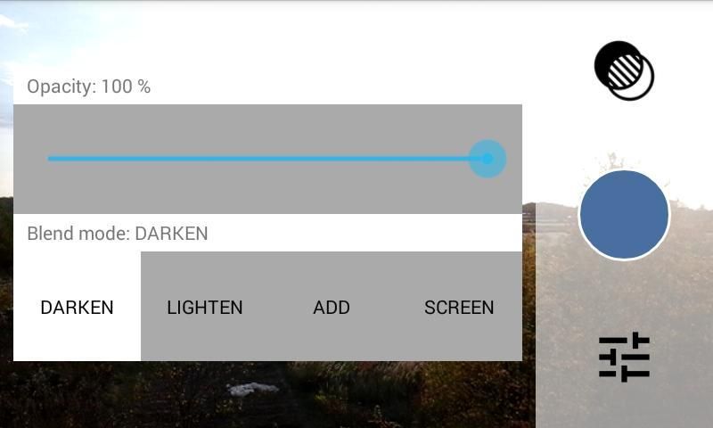 - Режимы смешивания: DARKEN, LIGHTEN, ADD, SCREEN.