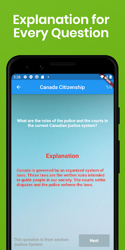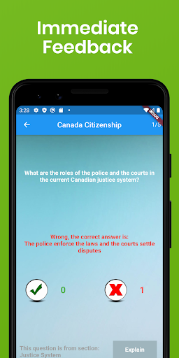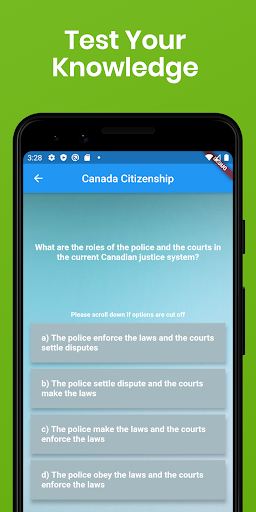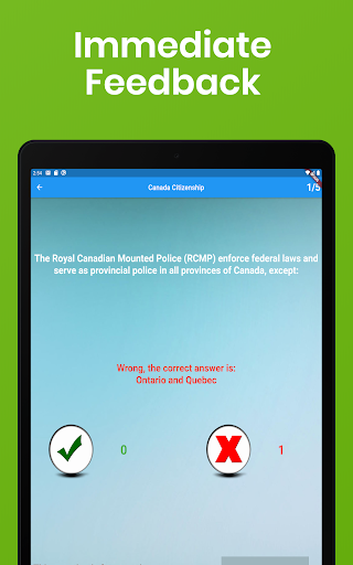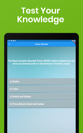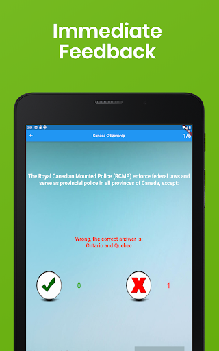 Хотите стать канадеком? Если это так, вы должны пройти обязательный канадский тест на гражданство. Основываясь на статистике, до 30% заявителей отказываются от этого сложного теста каждый год. Это приложение профессионально разработано, чтобы помочь вам эффективно изучить и пройти тест на гражданство. С более чем 200 фактическими вопросами, основанными на официальном учебном руководстве «Откройте для себя Канада», вы узнаете о истории и географии Канады и географии, экономике, символах, системе правосудия, системе управления, и правах и обязанностей быть канадским. Android телефон или планшет. Это приложение даже приходит с вопросами, уникальными для вашей провинции или территории, чтобы удовлетворить ваши индивидуальные потребности!