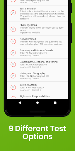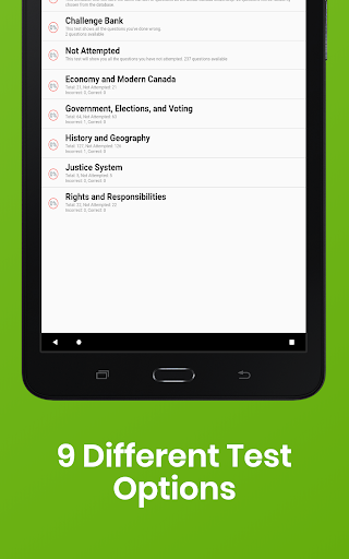 • Возможность просмотреть все вопросы теста на гражданство канадского гражданства, если вы не хотите принимать тест
