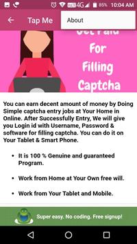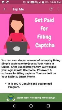 You can earn decent amount of money by Doing Simple captcha entry jobs at Your Home in Online. After Successfully Entry, We will give you Login id with Username, Password & software for filling captcha. You can do it on Your Tablet & Smart Phone.