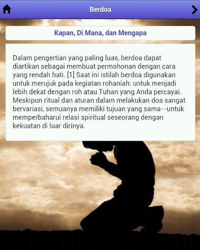 Dalam pengertian yang paling luas, berdoa dapat diartikan sebagai membuat permohonan dengan cara yang rendah hati. [1] Saat ini istilah berdoa digunakan untuk merujuk pada kegiatan rohaniah: untuk menjadi lebih dekat dengan roh atau Tuhan yang Anda percayai. Meskipun ritual dan aturan dalam melakukan doa sangat bervariasi, semuanya memiliki tujuan yang sama--untuk memperbaharui relasi spiritual seseorang dengan kekuatan di luar dirinya.