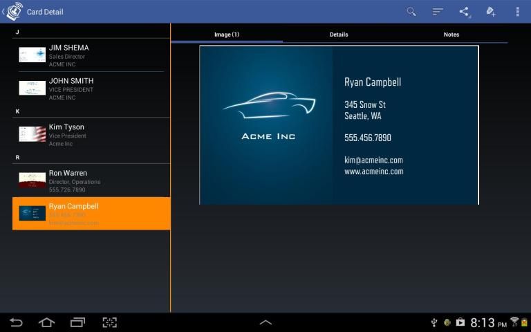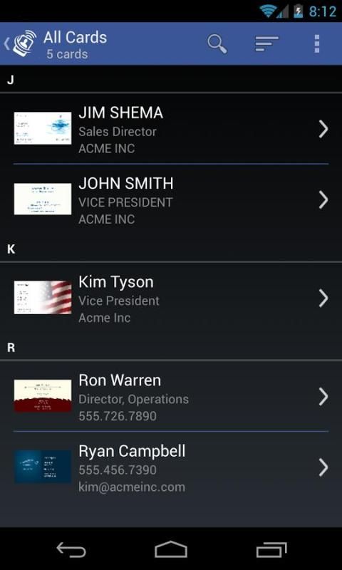 Помимо сохранения контактов в телефоне и учетных записей электронной почты, это визитная карточка приложение сканер также поддерживает список отсканированных карт.