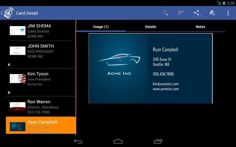 Этот простой в использовании читатель визитная карточка приложение поможет вам сканировать визитные карточки в ваших мобильных контактов. Привязать фотографию карты и приложение будет добавить контактную информацию в ваш телефон или планшет. Вы также можете использовать полнотекстовый поиск, чтобы легко найти карту, которую вы ищете.