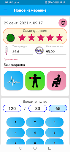 • Вести и редактировать журнал жизненно важных параметров здоровья человека - артериальное давление и пульс, наличие аритмии, самочувствия, положение измерения сидя лёжа, рука - левая правая, температура, насыщение крови кислородом.