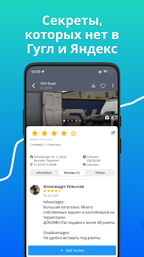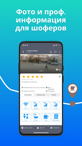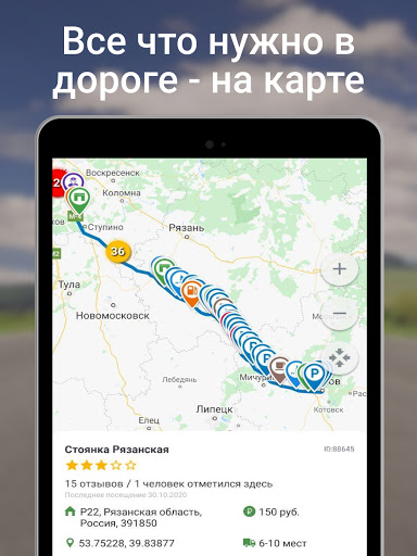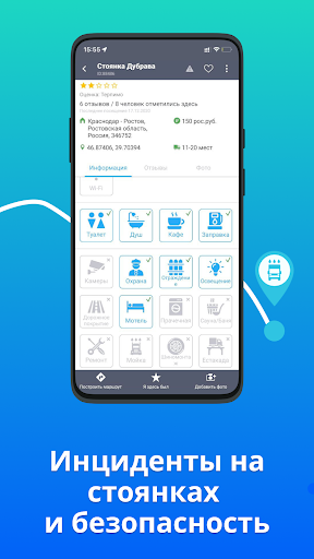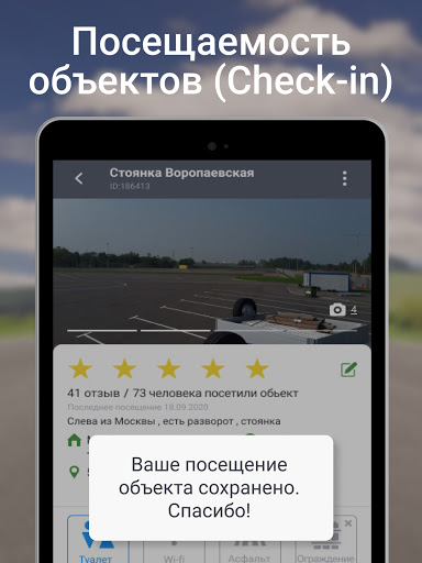 ★ Добавлять и изменять объекты , загружать фотографии, комментарии и отмечать посещения на грузовой парковке.