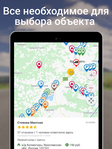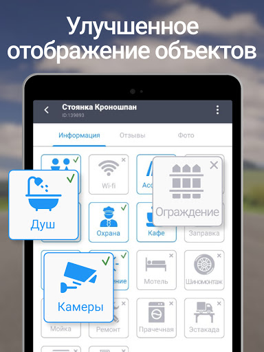 ★ Найти охраняемые свободные стоянки для грузовиков с фотографиями и другие объекты;