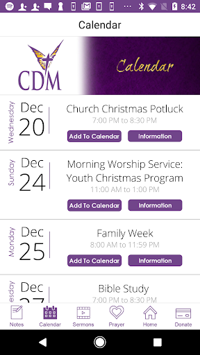 - Просмотр календаря в приложении, чтобы увидеть, какие события придумываются в министерствах Carol Dixon, а также с кликомКнопка вы можете добавить событие на календарь вашего устройства или получить дополнительную информацию о событии.