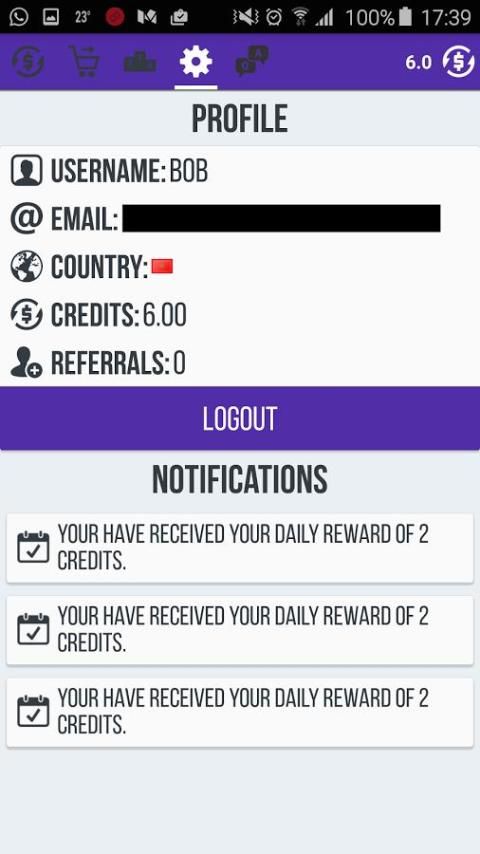 • уведомления в режиме реального времени будет уведомлять вас, когда у вас есть новые кредиты, чтобы преобразовать к быстрой PayPal денег