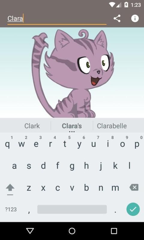 Введите свое имя (или что вы хотите), и пусть приложение автоматически генерировать новую кошку для этого имени. Поделитесь самые прекрасные из них со своими друзьями!