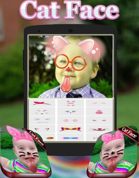 Cat Face Фильтры Effect представляет собой приложение для редактирования фотографий, которая может превратить вас в смешное лицо с различным милыми кошками и собаками наклейки фотографии. Кроме того, включать Многие фильтры и наклейки доступны, как собачье лицо, кот лицо, кролик лицо, радуга, глаза животных, маскарад камеры, смайлики, слезы, оснастку, B612 и многого другие.
