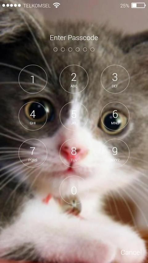 Блокировка экрана для Cat фоне очень легко активировать это, введя 6-значный номер, содержащийся в меню, которое находится в колонке «ПАРОЛЬ» настройки. Затем выберите доступные обои кошки в колонке «Изменить обои».