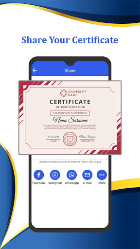 Certificate Maker application contains a considerable measure of a gathering of Certificates which is perfect in all cases. this application resembles going to card create certificate maker application which plans your card at home. make your own certificate as you wish.instant certificate creator will create an instant certificate and fully customize.