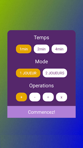 Это приложение позволяет практиковать соло с участием в области умственного расчета или в режиме вызова с вашим другом или ребенком.