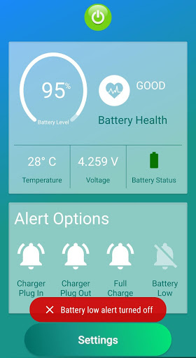 7. Пользователь может установить батарею полный и батарейный низкий уровень, а приложение даст предупреждение, когда батарея достигает этого уровня.