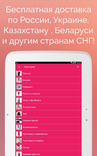 Введите ключевое слово в строку поиска или откройте каталог нужных вещей (купальники, колготки, брюки, платья, куртки и т.д.).
