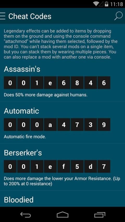 Приложение содержит список постоянно обновляется читы и руководства Fallout 4.